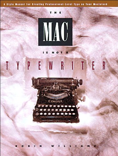 One of the most popular Macintosh books ever published (over 300,000 now in print), The Mac is not a typewritercovers the top twenty things you need to know to make your documents look clean and professional: em dashes, curly quotes, spaces and indents, white space, etc. It's a primer that novices can pick up quickly, and that pros can keep going back to. Winner of the 1991 Benjamin Franklin Award, Computer Book Category.